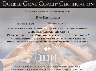 代表の樫村は、米国を中心にヤングアスリートのコーチング法として広く注目されている「PCAコーチ法」の資格を保持しており、このコーチング法を土台に「勝つこと」と「より良い人間に成長すること」の両立を目標に掲げています。