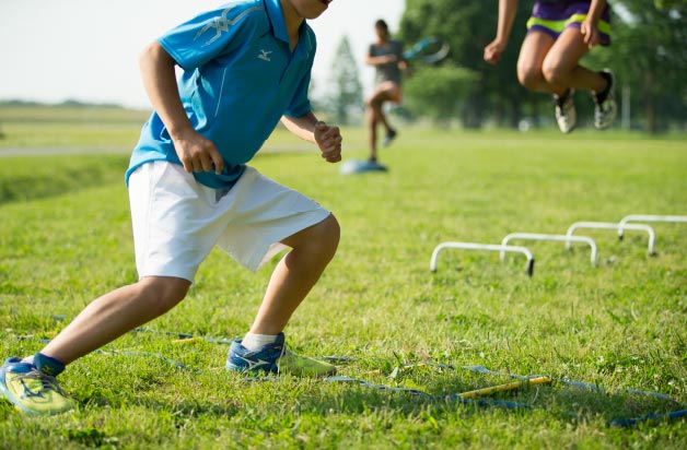 バリエーション豊かなトレーニング機器を取り入れ、筋力系、瞬発・スピード系、フットワーク系、 持久力系、バランス系、クロストレーニング系など、 幅広くトレーニングをサポート。年間のピリオダイゼーションを作成し、周期を準備期、試合前期、試合期、移行期に設定し、計画的にトレーニングを行っています。期間によりトレーニング内容/強度を調整することにより、試合に向けてフィジカルコンディションを向上させ、丈夫な体作りと、安定したプレーにつなげていきます。